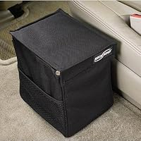 Last year I purchased an SUV that has a console and no place to stash trash. With two boys, thier friends, and carpools this was not good. I searched department stores and auto parts stores for a weighted trash bin (that wouldn't tip over) and had no luck. Finally, I came across this product on Amazon. It is just what I wanted -it is weighted AND has velcroe, so it stays put behind the console in a place where all vehicle occupants can easily dispose of trash. It is neat and clean looking. It's a bit small, but I keep it lined with an 8 gallon trash bag and empty it often.