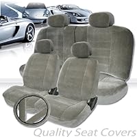 1)Velour feel as described, comfortable, construction seems fine for a 40-50$ full set car seat cover -seems like will hold up with use.