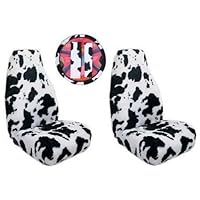 I looked at several cow print car seat covers online and chose these because of the size of the spots. Many of the other pictures look more like a Dalmation than a cow. Unfortunately, when these arrived, the spots were much smaller and not as they are pictured online. They actually look identical to the picture from the manufacturer "Shear Comfort" which are much more expensive as well.