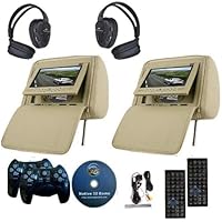 Best Deals for iClever Pair of BEIGE Headrest 7" LCD Car Monitors with Region Free