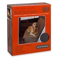 This seat cover works great! Adjustable headrest straps, seat belt cut outs so you can still use your doggy seat belts & plastic plugs that fit in between the crease of the bottom of the seat & back of the seat to hold the cover snugly in place. Thick waterproof material is also great for snow, mud & rain. I would definitely recommend this product!