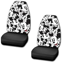 These were exactly what I wanted. They are a bit tough to slide onto the seat because the inside is like a foam that sticks to my fabric seats. However, every seat cover I've ever had has been a process to get on. You just have to be patient & careful. If you start yanking & forcing there is the potential to rip the fabric. I had no problem though. They fit and look great! There are plastic hooks provided to hook the elastic straps together under the seat. These looked a bit flimsy. I used them on one seat, but the other I just looped the elastic straps over metal pieces of the seat underneath. So far no problems on either side. I'm completely satisfied with these. I love Mickey Mouse & the simple black & white color theme goes perfectly with my white car. It's great to have something unique as well that no one else really has.