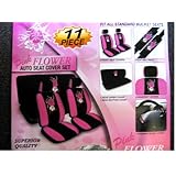 This set of covers for; seat, wheel, seat-belt and such arrived on time and in good condition. However it did not have the pink stripes as it did in the add, which i was very excited about. The fabric is very thin and easily tears near the stitching and seamed areas so be careful. The covers themselves were exceedingly difficult to actually put on the seats, it took me over an hour with directions to finally achieve an acceptable result. The covers don't fit in certain places and are too large in others. The overall look it gives the interior of my car is certainly better than before, but not as satisfactory as i was hoping. Also the covers will give your car a STRONG plastic smell for a few weeks, especially it's first time in the sun for a few hours.